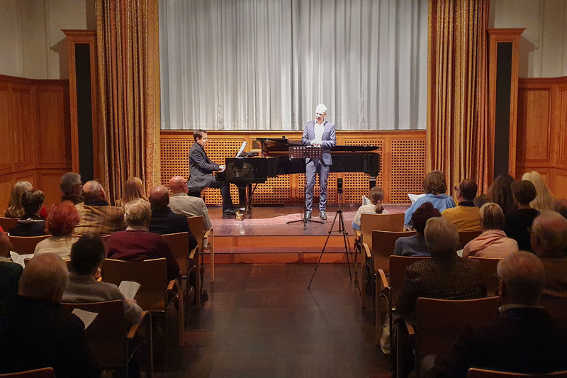 Die kirchennahe Gottliebe und Karl Adolf Schön Stiftung mit Sitz in Lindau, hatte dazu die beiden Musiker Andreas Preuß aus Hamburg (Tenor) und Professor Gerhard Vielhaber aus Neuravensburg (Pianist) gewinnen können. Sie beeindruckten nicht nur durch eine souveräne Gestaltung ihrer Partien, sondern sie bestätigten das Zitat von Gustav Mahler „Das Beste in der Musik steht nicht in den Noten“. Die Zuhörenden erlebten, dass der wahre Ausdruck, die Emotion und das Geheimnis der Musik in der Interpretation, der Stille zwischen den Tönen und der schöpferischen Freiheit liegt und Musik weit über die geschriebene Partitur hinausgeht. Besonders berührend gestalteten sie die Zugabe „Leise flehen meine Lieder“ von Franz Schubert. Diese widmeten die beiden Musiker ihrem ehemaligen Musik-Professor und Pianist Justus Zeyen, der vor kurzem unerwartet starb.
